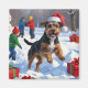 A strong Chesapeake Bay Retriever runs through the snowy winter scene, wearing a festive red Christmas hat. This lively design highlights the breed’s wavy coat, loyal nature, and adventurous spirit while capturing the warmth and joy of the holiday season. A heartwarming winter moment full of festive charm.