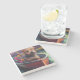 The coasters are gorgeous, a quality feel and heavy weight. They look like a precious archeological find. A rustic stone juxtaposed with a modern floral black and white print. I like the way the print goes slightly imperfect on the cut stone edges giving them a kind-of natural beauty.