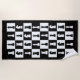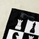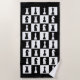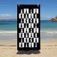 Black beach towel with a black and white chess game figures pattern design.