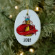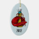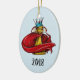 Keepsake ornament features a king chess piece complete with crown and swirling red cape - now that's what we call a seriously royal move! Light blue background. Customise with year or other special text