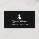 Chess lessons teacher business card template. Elegant company card for coach,teacher, tutor, chess player, school, employee, boss, entrepreneur, game company or other jobs. Black and white layout design with pawn chess piece watermark logo and modern typography. Make your own visit cards for teaching the game. Also great for school, strategic marketing, advertising and other promotions. Customisable text for custom address, phone, email and website. Cool icon card with optional rounded corners or gloss texture. Start your business today! USe ALT code to change the icon into a pawn, rook, bishop, knight, queen or king. ♕♔♘♗♖♙