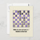 Picture of a chess puzzle to solve on the front. White to move and mate in 1. Solution is given on the back.