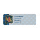 Blue address labels featuring vector artwork of chess pieces such as the knight, rook, bishop and pawn on a background with patterned edges.