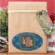 Blue oval sticker featuring vector artwork of chess pieces such as the knight, rook, bishop and pawn on a background with patterned edges.