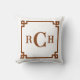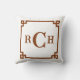 Chestnut Brown Chinoiserie Greek Key Monogram Cushion