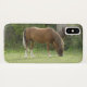 This awesome iPhone case features a beautiful photograph of a gorgeous chestnut brown coloured horse with a shaggy mane and white feet. The horse is grazing on some short green grass in a field.