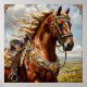 Chestnut Horse with Ornate Saddle Under Sunny Sky Poster