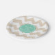 Customisable 35th Birthday Party Paper Plate with chevron and customisable colour into round tag. You can easily change background colour ((here aqua mint colour) and text colour (name), font, size and position by clicking the customise button. Matching Chevron Birthday paper Napkins, birthday save the date, invitation and guest book. Don't forget the whole collection.