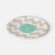 Customisable 50th Birthday Party Paper Plate with chevron and customisable colour into round tag. You can easily change background colour ((here aqua mint colour) and text colour (name), font, size and position by clicking the customise button. Matching Chevron Birthday paper Napkins, birthday save the date, invitation and guest book. Don't forget the whole collection.