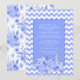 Pretty blue delft inspired bridal shower invitation done in a blue and white chevron pattern, on the front decorated with blue and white flowers at the bottom. A periwinkle blue text area, with custom white text is ready to personalise. The of the invitation is done in a blue and white floral pattern. Matching party supplies are available.