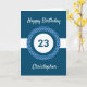 A personalised blue 23rd birthday card for him, which you can easily personalise with the age you need along with his name on the front of the card. You can easily personalise the inside card message if you wanted. This blue personalised 23rd birthday card for him would make a unique keepsake.