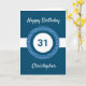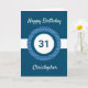 A personalised blue 31st birthday card for him, which you can easily personalise with the age you need along with his name on the front of the card. You can easily personalise the inside card message if you wanted. This blue personalised 31st birthday card for him would make a great keepsake.
