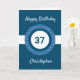 A personalised blue 37th birthday card, which you can easily personalise with his name on the front of the card. You can also personalise the inside card message if you wanted. This personalised 37th birthday card for him would make a great keepsake.
