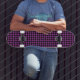 The classic style of traditional houndstooth and herringbone collide with minimalist design in this chunky chevron shaped checks pattern in dramatic bright purple plum and black