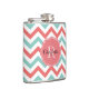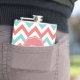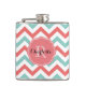 Chevron Coral and Aqua Custom Name Hip Flask