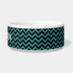 Hip and trendy Chevron Glitter Look Dog Bowl. This cool dog bowl features a chevron zig zag pattern on top of a digital art turquoise glitter background.
