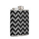 Hip and trendy Chevron Glitter Look Flask. This cool flask features a chevron zig zag pattern on top of a digital art silver glitter background.