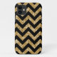 Hip and trendy Chevron Glitter Look Case-Mate iPhone 5 Barely There Case. This cool case features a chevron zig zag pattern on top of a digital art gold glitter background. Add text to this design to give it a personal touch.