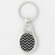 Hip and trendy Chevron Glitter Look Metal Keychain. This cool design features a chevron zig zag pattern on top of a digital art silver glitter background.