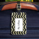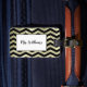 This fun luggage tag is decorated with Mrs. Williams written on the front, on a chevron black and gold background, making it perfect for the new bride's honeymoon. This luggage tag can easily be personalised to a coordinating Mr. tag or to a name.