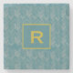 Chevron Herringbone Pattern Turquoise Initial Stone Coaster