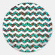Chevron Leopard Brown and Teal Print Classic Round Sticker