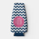 Chevron Pattern with Monogram - Navy Magenta Bottle Cooler