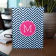 Chevron Pattern with Monogram - Navy Magenta Notebook