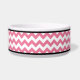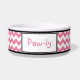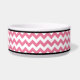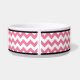 Stylish ceramic dog bowl designed with a pink & white chevron zigzag pattern and personalised with your pet's name.