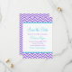 A modern chevron pattern Bat Mitzvah save the date. Featuring a purple and white chevron pattern with accents of aqua teal blue.