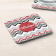 Chevron Red Grey Black Monogrammed Circle Stitches Coaster