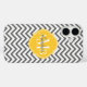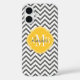 © 2013 Socialite Designs. Our elegant chevron design in grey and white mobile phone case has a light yellow banner for your monogram, initials or name.