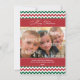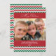A chevron pattern in Christmasy colours of red and green make a bold statement on this greeting. Merry Christmas is written out in an ornate calligraphy above a customised photo. Add names and the year or other text in the crimson red pinstripe panel below. Available in alternate colours with matching products.