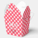 Chex 7-WATERMELON RED-PARTY FAVOR BOX, take out style-BOX TEMPLATE-This pattern is reminiscent of grandma's cook books from way back when. Back then it was a specific colour. Today, here, the chex pattern is available in assorted colours. The background of the favour box is covered in the chex pattern. A decorative word art text reads: GUEST on the box front. On the middle front is another decorative word art text, it reads: Thank You! At the very bottom front of the box is a text area for you to personalise with. Edit the text to say anything you like. Delete or clear the text if you do not want it. Coordinating party supplies and gifts are available.