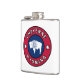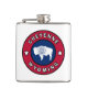 The flask itself is fine. It’s a cheap flask, obviously bought in bulk, however am prepared to overlook that. Given that it is a personalized item, I would have liked to have seen gift boxing instead of the generic packaging. Terrible printing, and/or quality. It’s a cheap, tacky vinyl. It is not cut straight and is also applied in a way that it is overhanging the bottom, causing the glue to catch on items and it will eventually roll and tear, damaging the wrap.