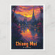 Chiang Mai Thailand Vintage Travel Illustration Postcard