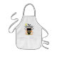 This apron is made with a durable fabric! My grandson LOVES it! The shape provides great coverage to protect clothes from paint spatters, etc. The print quality is excellent! The detailed lines of the dragon drawings are printed in a crisp, clean manner.