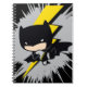Check out Chibi Batman do a flying kick against a lightning bolt background.