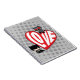 Check out Chibi Catwoman pouncing on Chibi Batman in this adorable graphic, featuring a giant red heart with the word "Love".