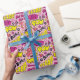 Check out these cute comic book phrases and super hero logos from Chibi Justice League in this pink and yellow toss pattern.