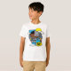 100% cotton so perfect for summer, It is a nicely designed t-shirt, the fabric is soft and the seams finished well, the body of the t shirt has no side seams. I bought a medium size for my two grandsons, aged 9 and 8 it will be slightly big on them but I would rather that than too small