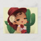 Chibi cute girl in flamenco dance dress and Spanish hat . With cactuses on background.