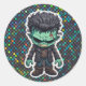 Adorable chibi Frankenstein monster sticker featuring a cute, cartoon-style design with a sparkling sequin background. Perfect for Halloween, scrapbooking, laptop decoration, water bottles, or gift embellishments. This fun and whimsical sticker adds a touch of spooky-cute charm to any surface!