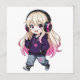 Adorable kawaii chibi anime girl design with pink aesthetic headphones, perfect for unique gifts and personalized accessories.