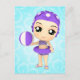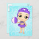 Precious chibi girl ready for a pool party with her swim cap and ball postcard. Even a swim ring to keep her afloat. Great for a girls pool party! Wonderful chibi postcard.