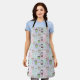 A cute and colourful apron featuring a whimsical pattern of adorable, cartoonish Halloween monsters like ghosts, mummies, and vampires against a soft pastel background. Perfect for baking spooky treats.