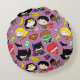 Chibi Justice League Pattern on Purple Round Cushion