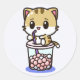 Chibi Kawaii Cat Drinking Bubble Tea Classic Round Sticker