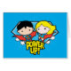 Check out Chibi Superman and Chibi Supergirl flying through the clouds with a starburst, halftone shield behind them and the words "Power Up!".