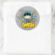 Chibi Superman Smashing Through Brick Wall Classic Round Sticker